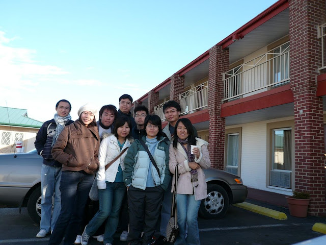 本打消繼續找尋餐廳的念頭,打道回府(旅館)享用「感恩節泡麵大餐」,就在回程路上看見難得一間未歇業的速食店Hardee's。九人當做一家,共度感恩節。